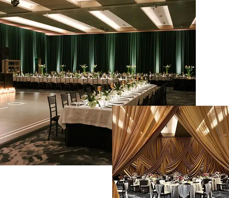 Safety is our top priority. We use the highest-quality hardware, industry-standard weights, and secure installation techniques to make sure your drapery setup is safe and stable throughout your event. Rest assured, with us, your event is in capable hands.
